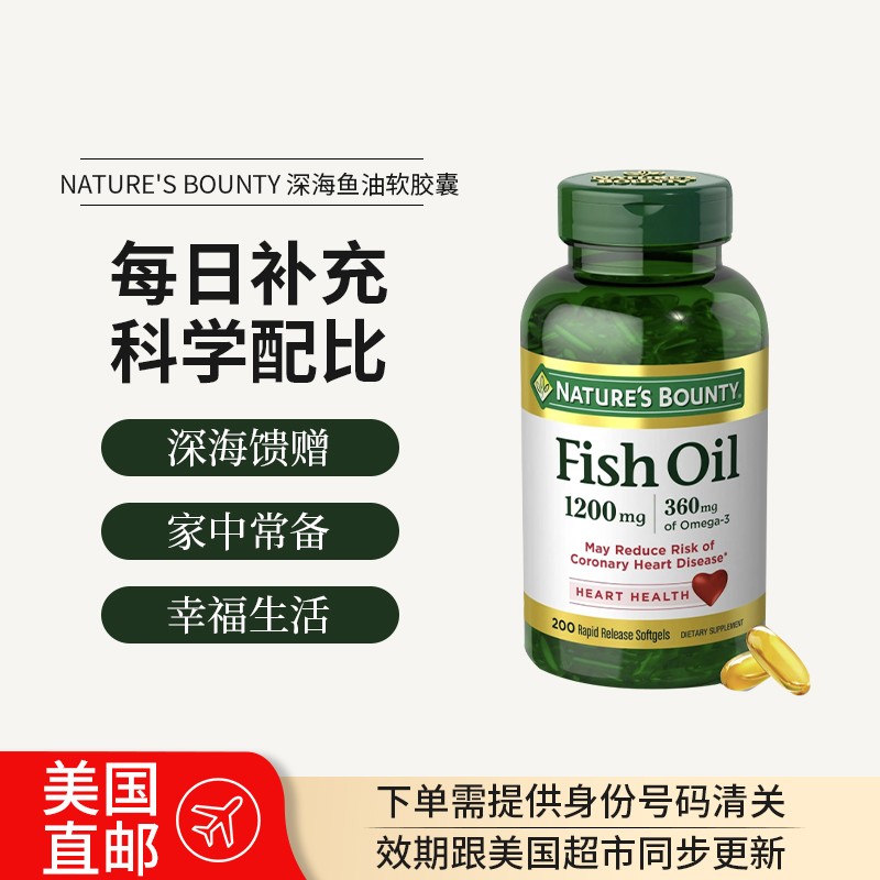美国直邮 Natures Bounty 自然之宝深海鱼油高浓度1200mg 200粒