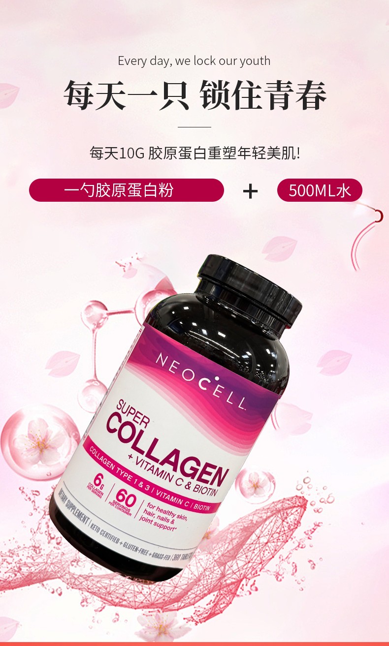 美国直邮 NeoCell Super Collagen胶原蛋白+VC+生物素360片