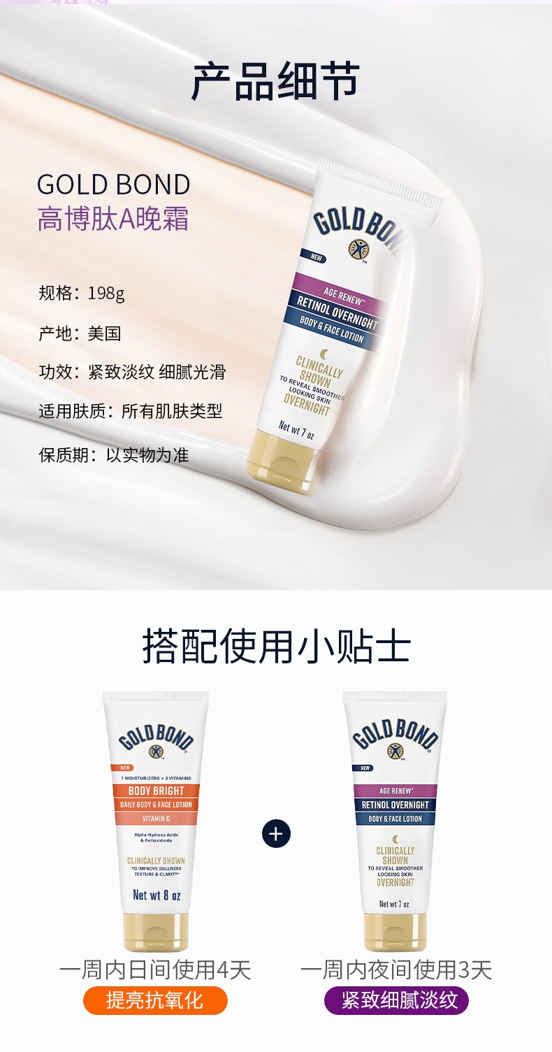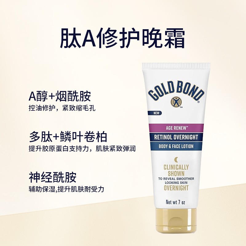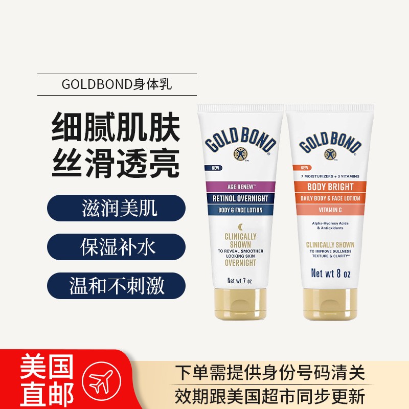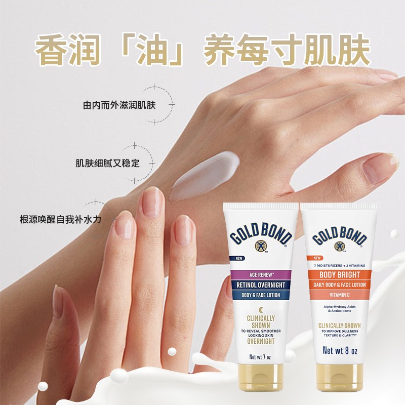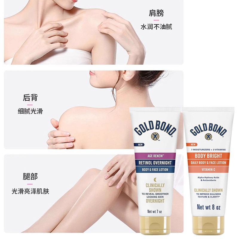 美国直邮gold bond高博vc烟酰胺果酸身体乳+肽A视黄醇晚霜身体乳