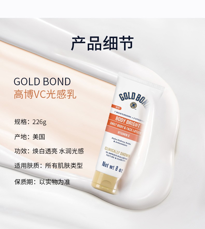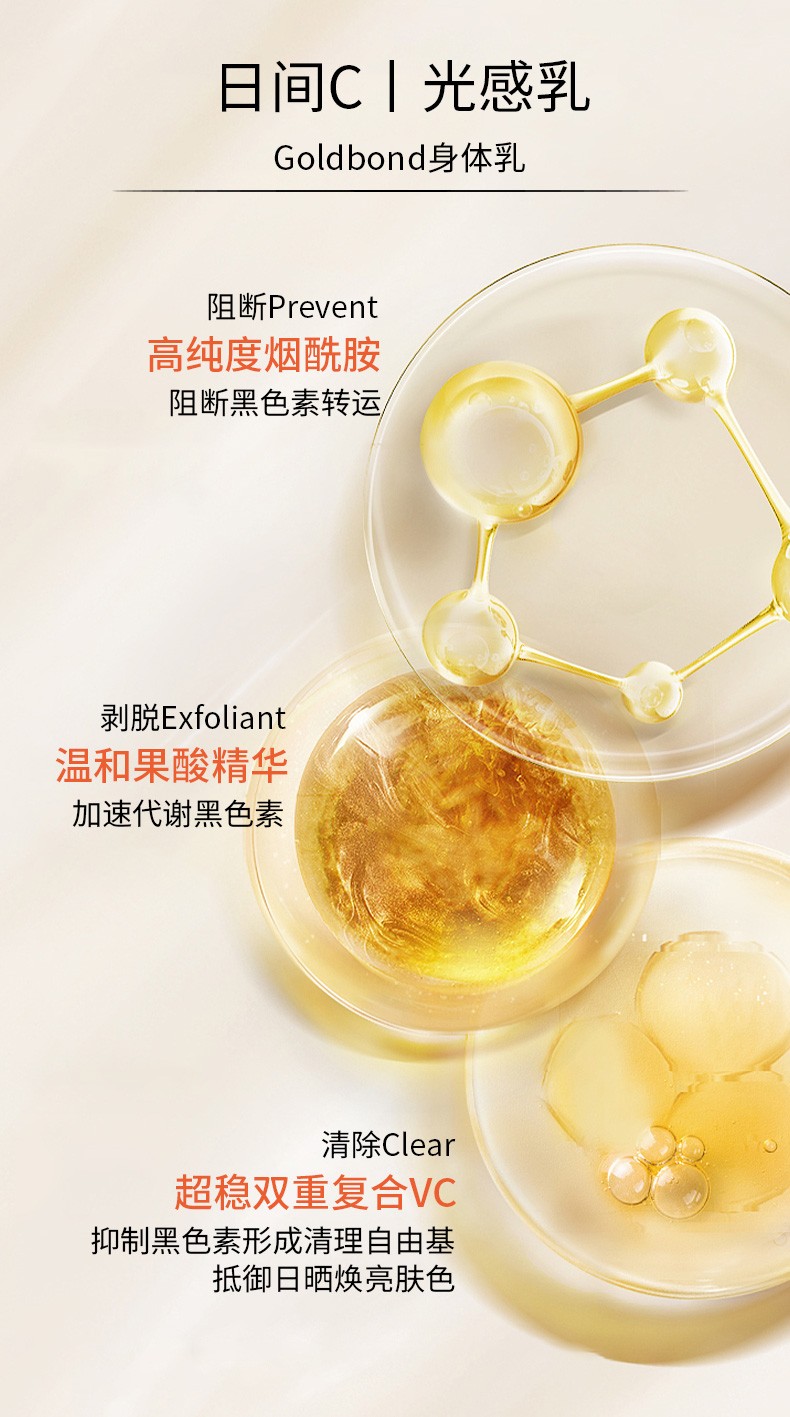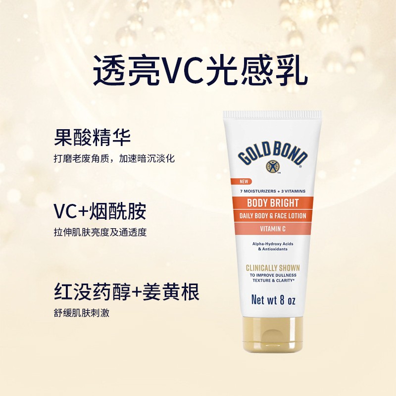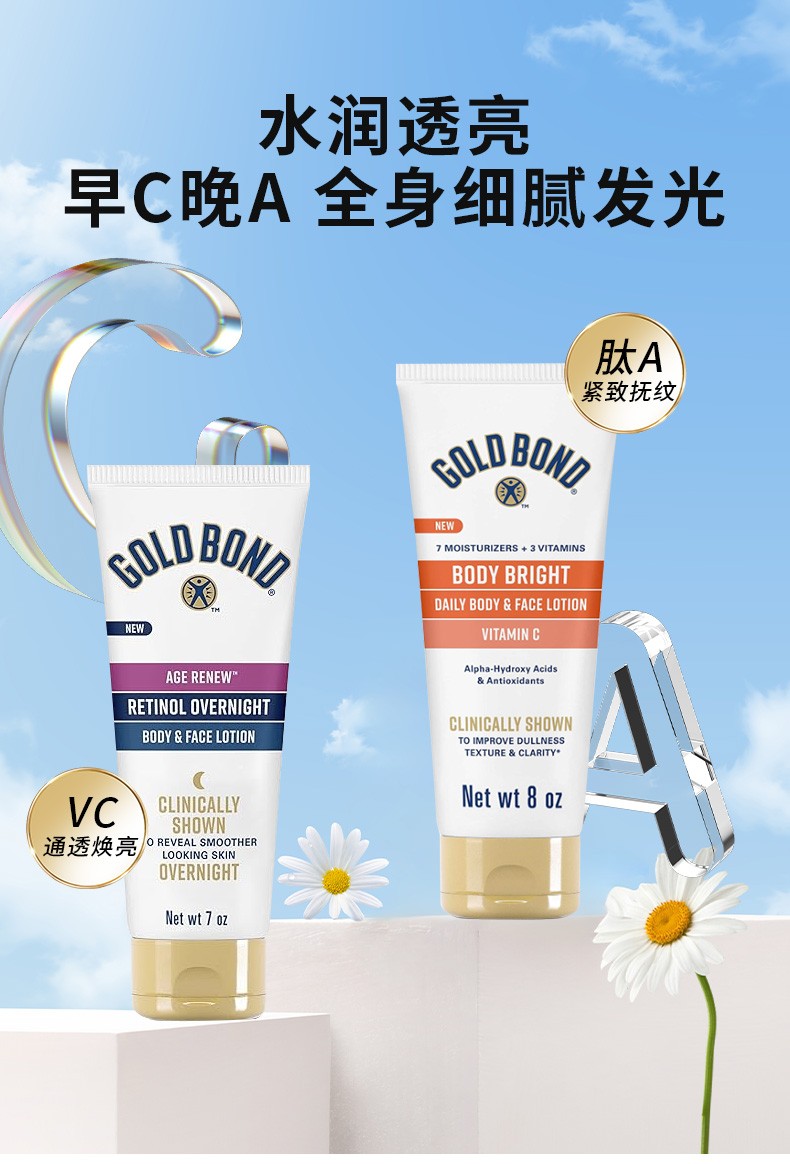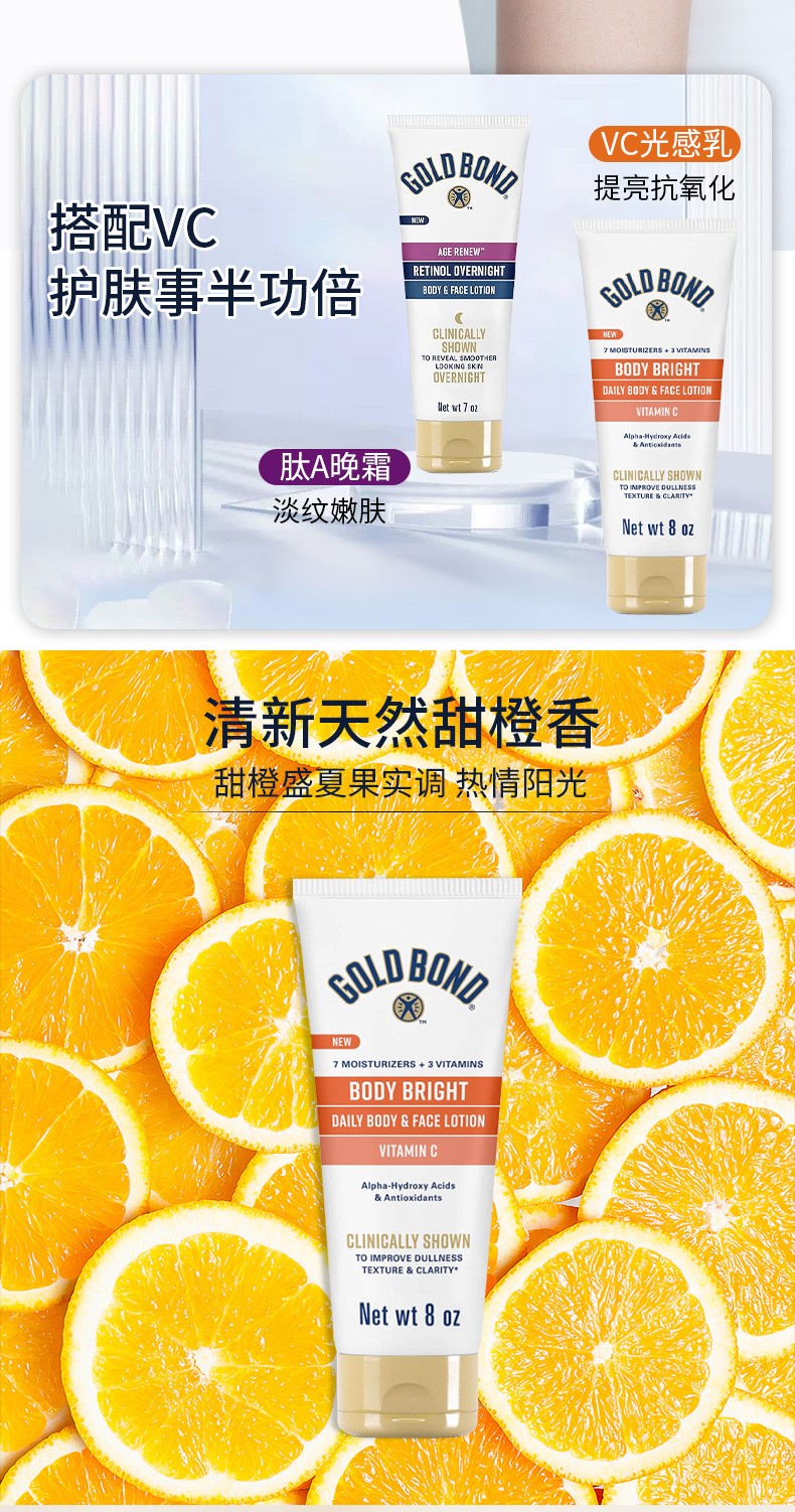 美国直邮gold bond高博vc烟酰胺果酸身体乳+肽A视黄醇晚霜身体乳