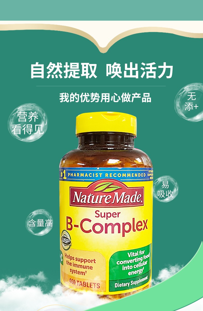 美国直邮Nature Made VB片复合B族维生素含维生素C叶酸460粒