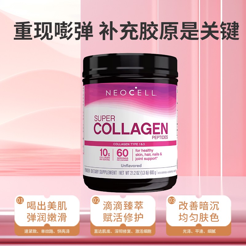 美国直邮Neocell Collagen胶原蛋白粉 水解小分子胶原蛋白肽600g