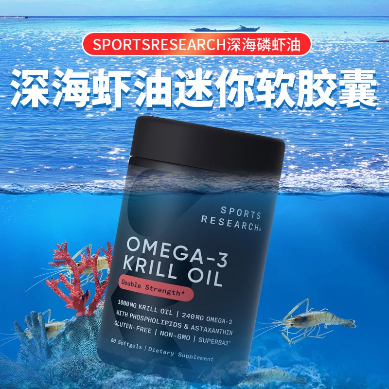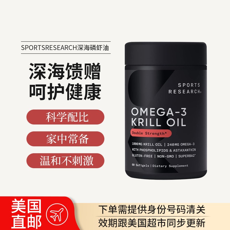 美国直邮Sport SResearch krill oil南极深海磷虾油omega3虾青素软胶囊