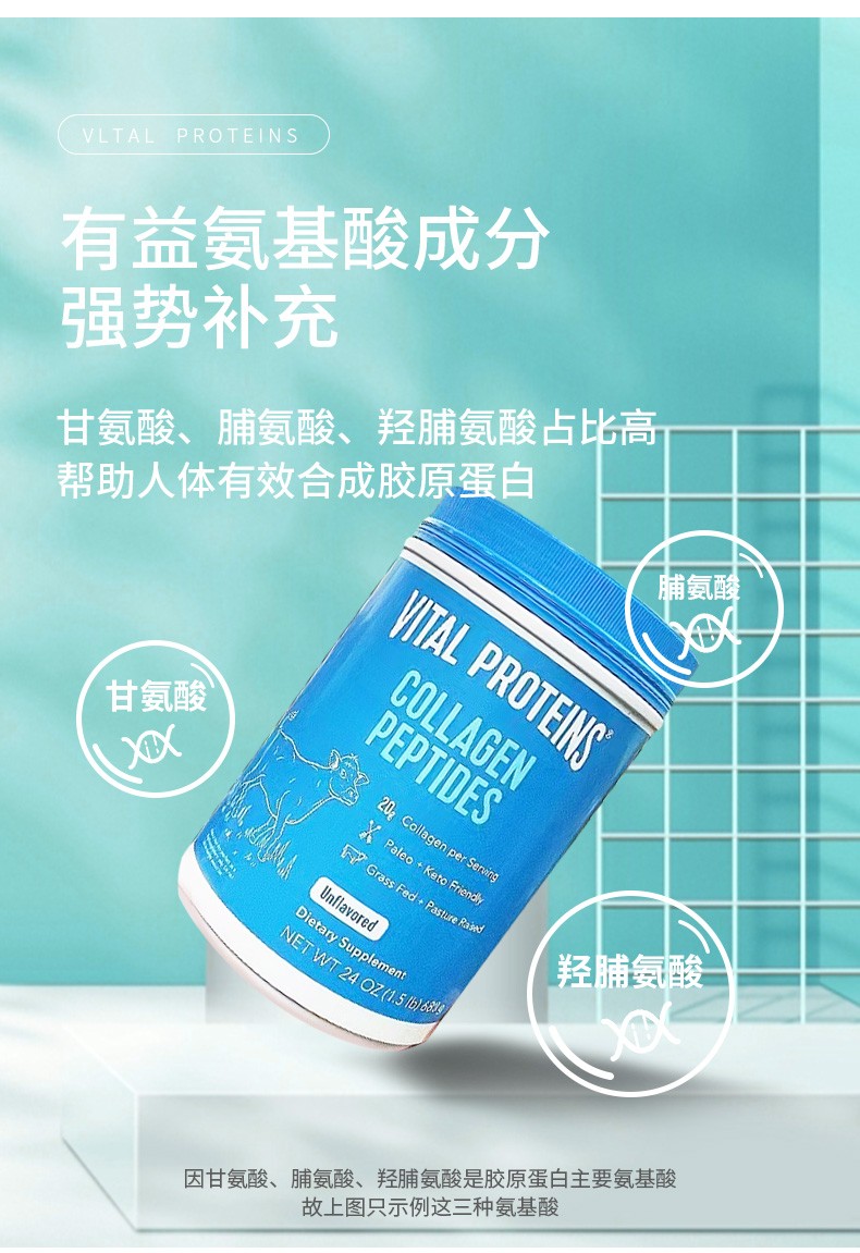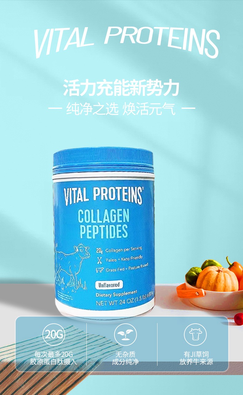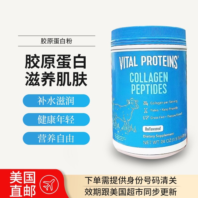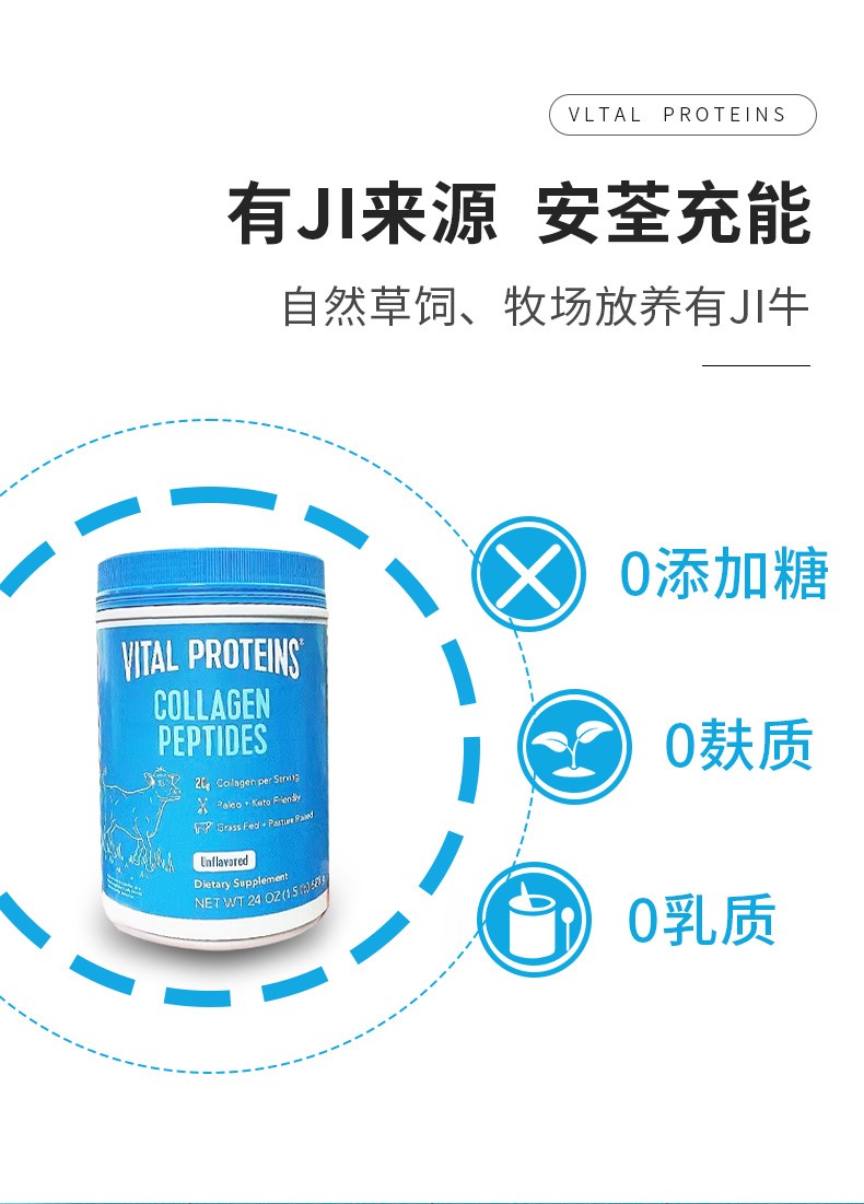 美国直邮Vital Proteins头发皮肤指甲多肽胶原蛋白粉 680g