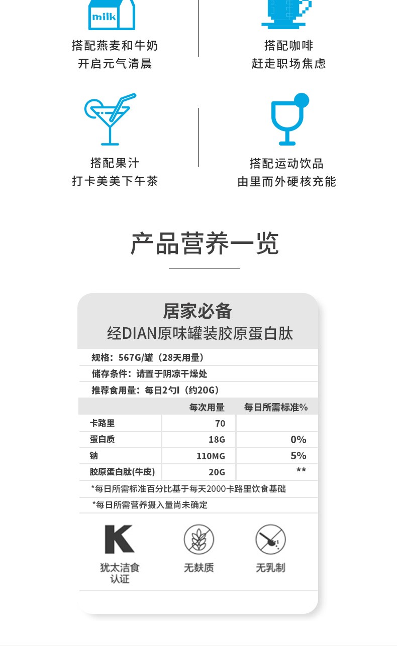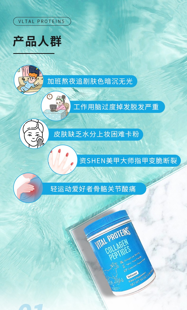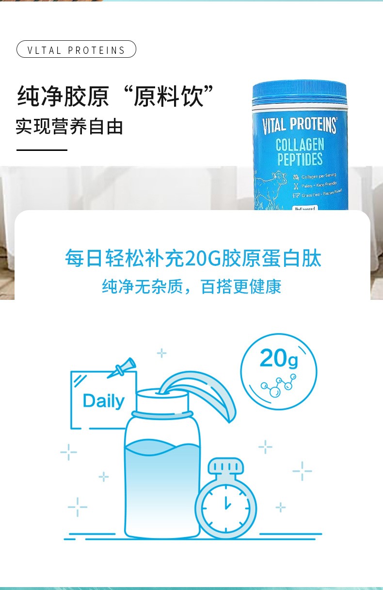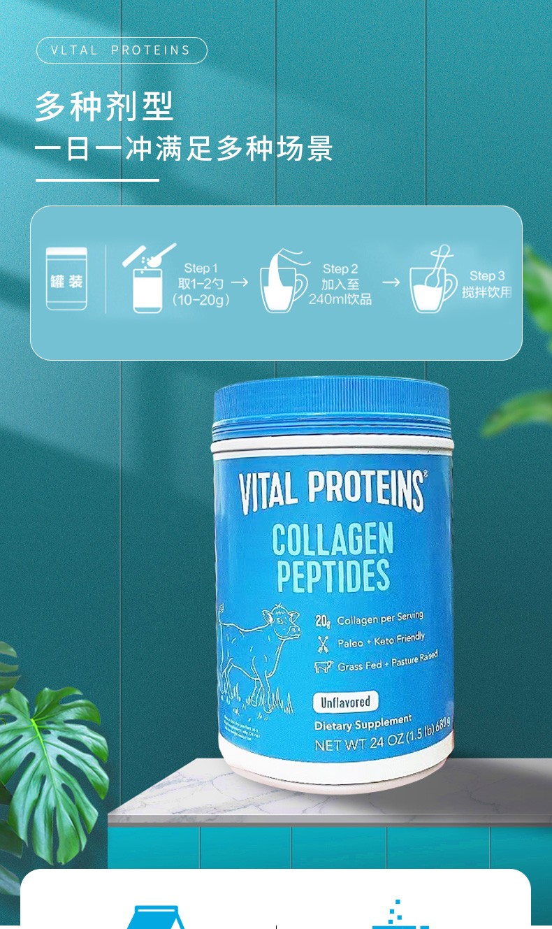 美国直邮Vital Proteins头发皮肤指甲多肽胶原蛋白粉 680g